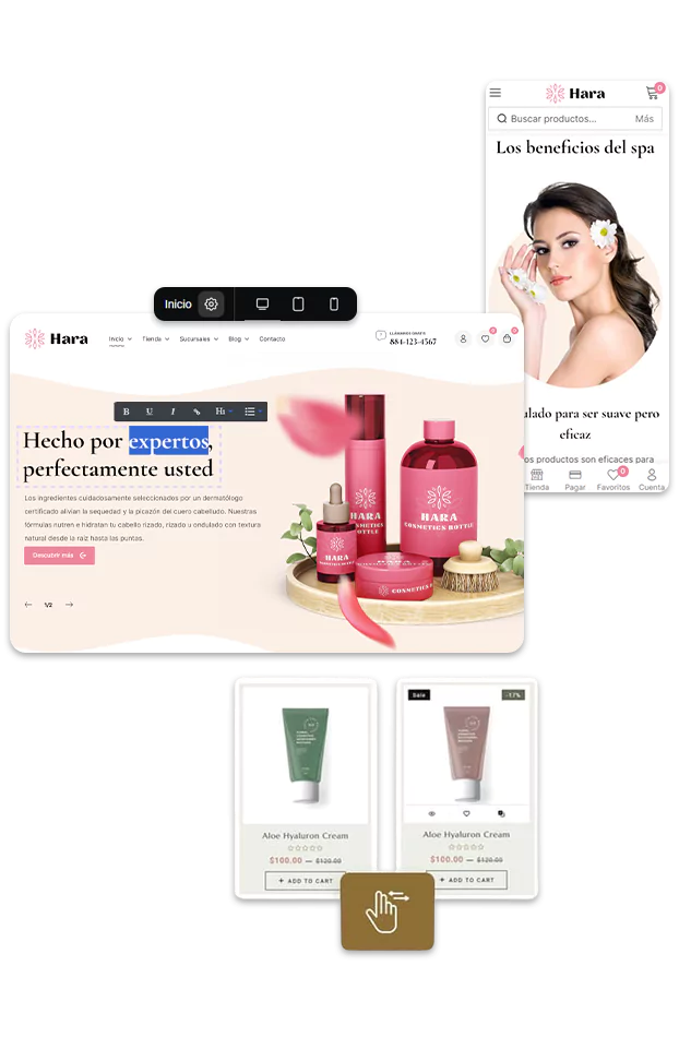 Design your site easily with our Dynamic Editor. An intuitive tool that lets you create directly on the grid, with no programming or design experience required.